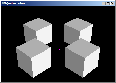 modélisation est affiché dans le viewport de visualisation (la fenêtre) en projection selon l'axe -z du repère de modélisation. Le viewport de visualisation est configuré pour occuper automatiquement